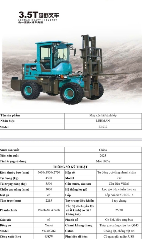 Thông số kỹ thuật xe nâng địa hình LEHMAN ZL932